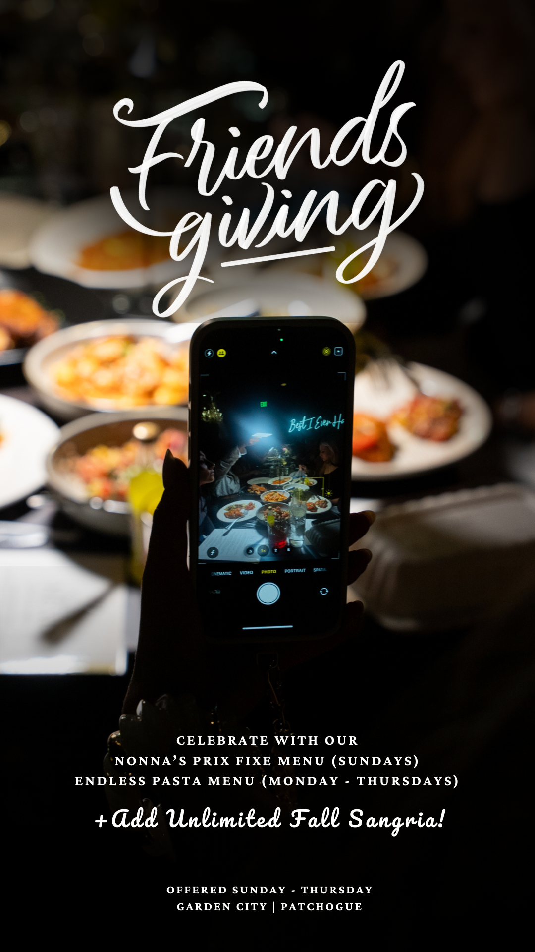 Gather your friends and celebrate Friendsgiving dinner at ITA Kitchen with our Nonna's Prix Fixe Menu (Sundays) or Endless Pasta Menu (Monday - Thursday).