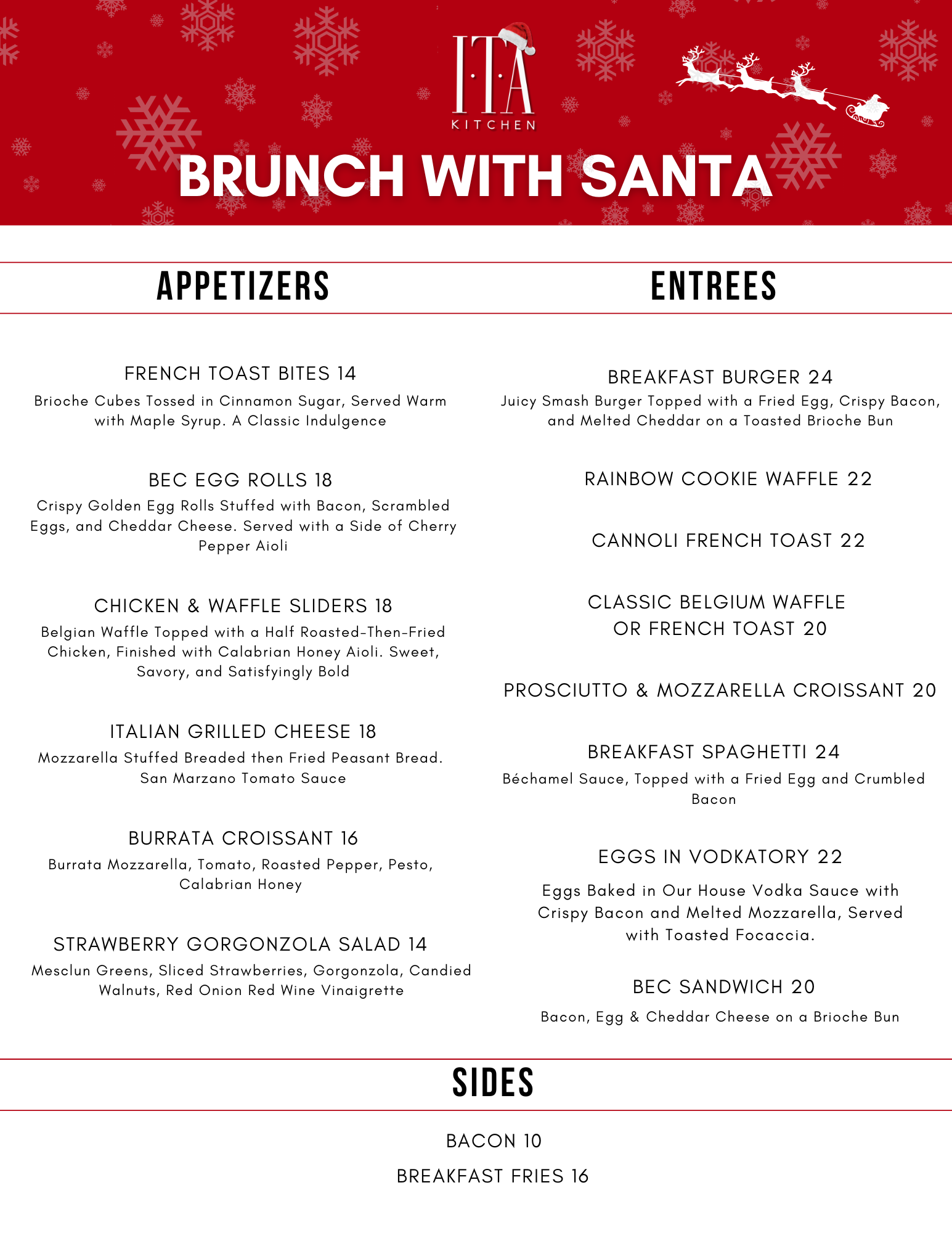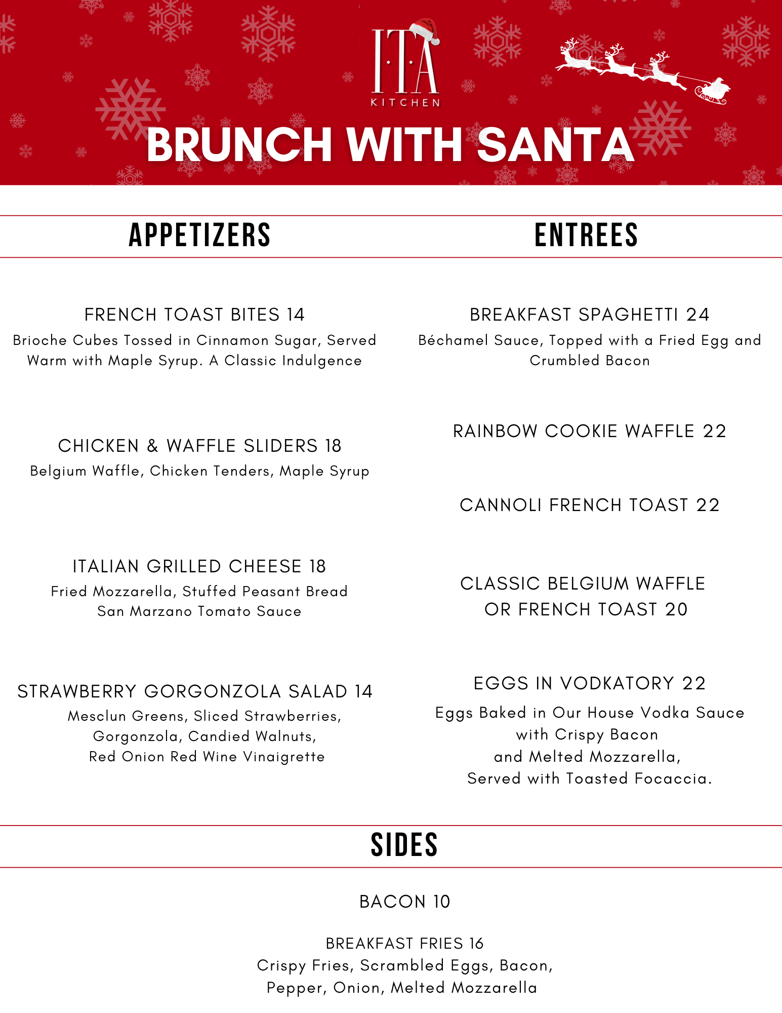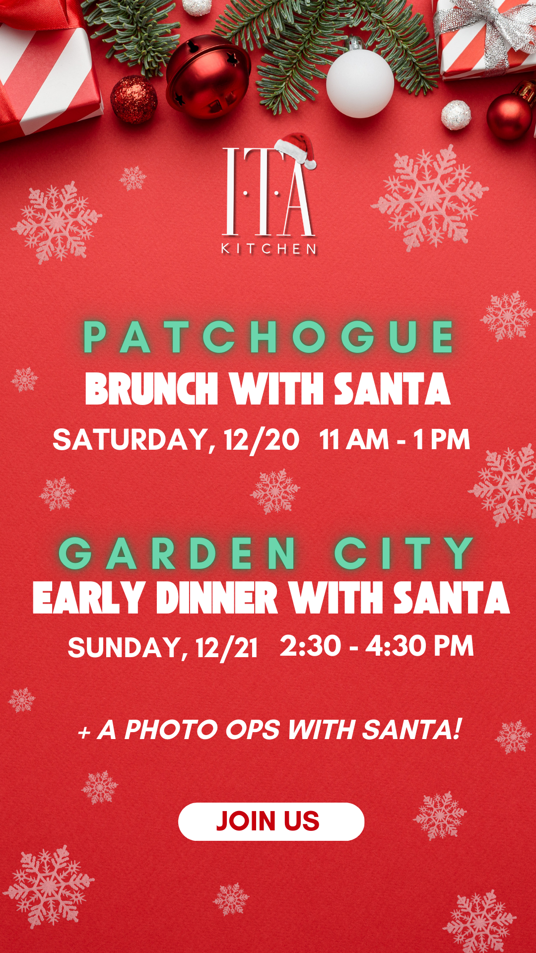 Celebrate the holidays at ITA Kitchen with a festive family dining experience featuring Santa photos, holiday cocktails, and seasonal favorites.